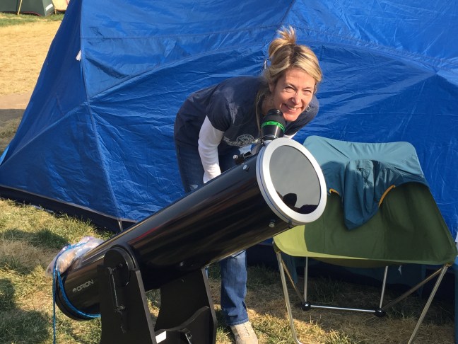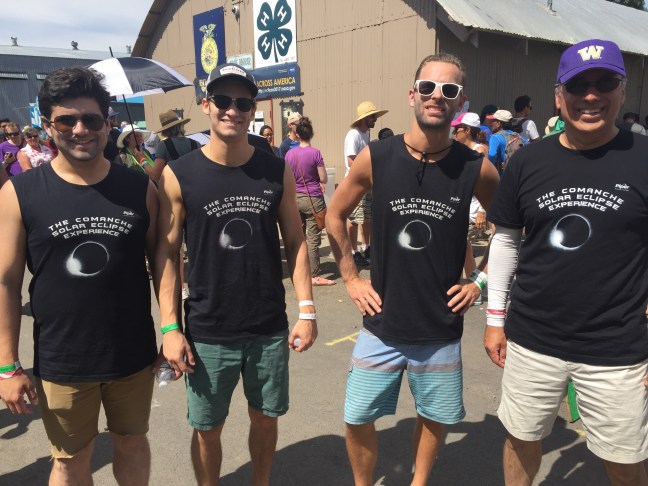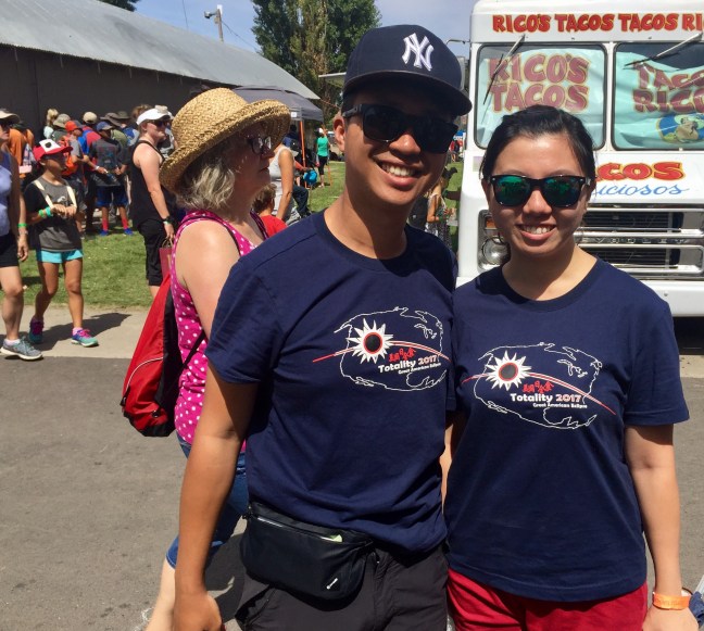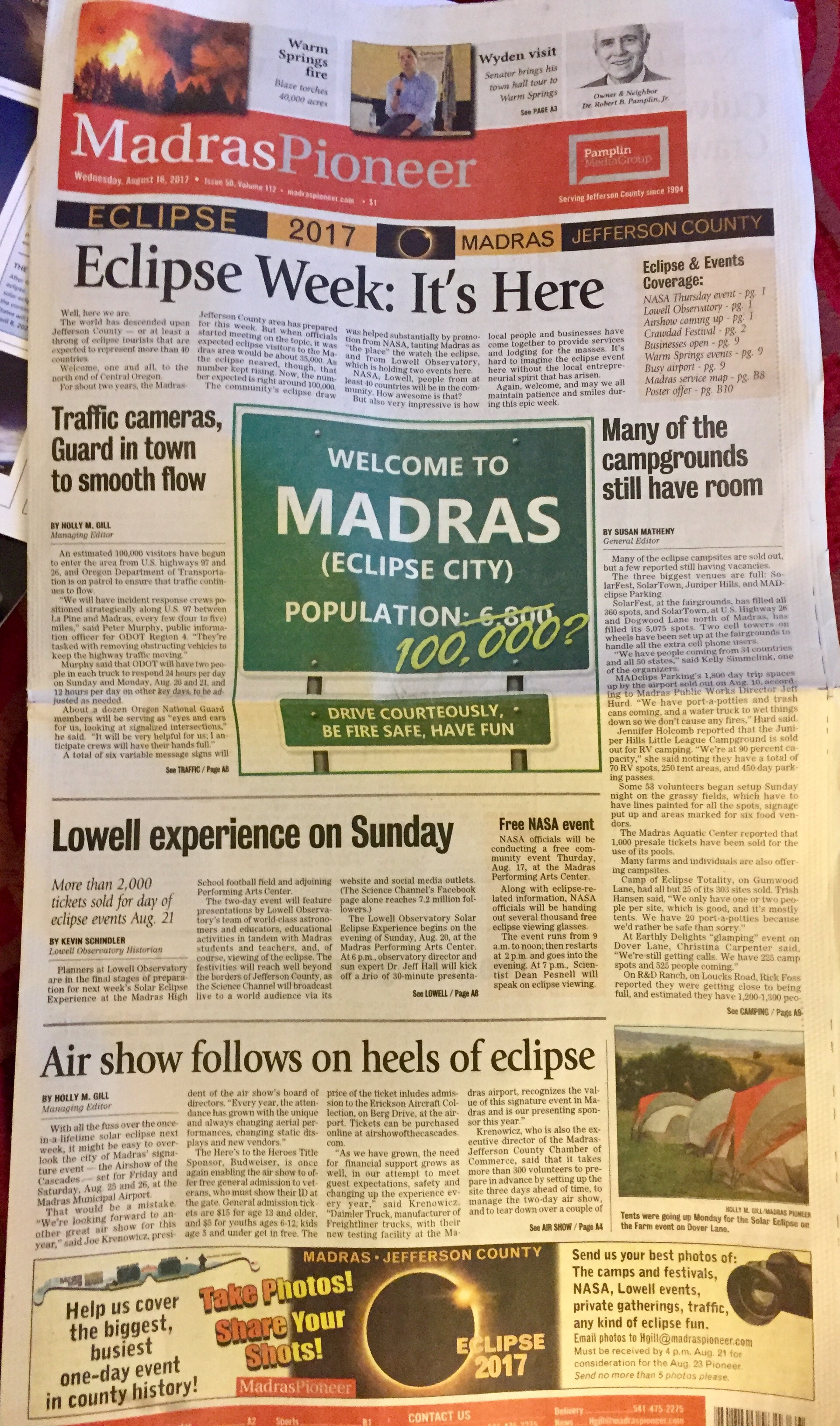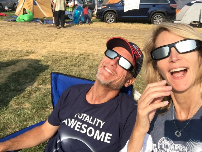 It was strangely quiet last night as 10,000 hopeful humans settled in to their campsites early to enjoy some serious stargazing. Five miles north of the limited light pollution from downtown Madras we could gaze clearly at the constellations, planets and even the center of our own Milky Way galaxy. We were treated to a stellar cosmic preview as a ‘shooting star” fell across the handle of the Big Dipper. Questions whispered around us were focused on reviewing the eclipse basics we would need for success in the morning … “What time is first contact?” “Is the Diamond Ring effect before or after totality?” “When can I safely remove my eclipse glasses?”