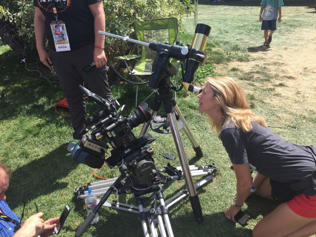 They could see me too; in the farmer’s field flanked to the west by the volcanic Cascade mountains and backdropped by the rising sun. Curious fellow eclipsters looked on.