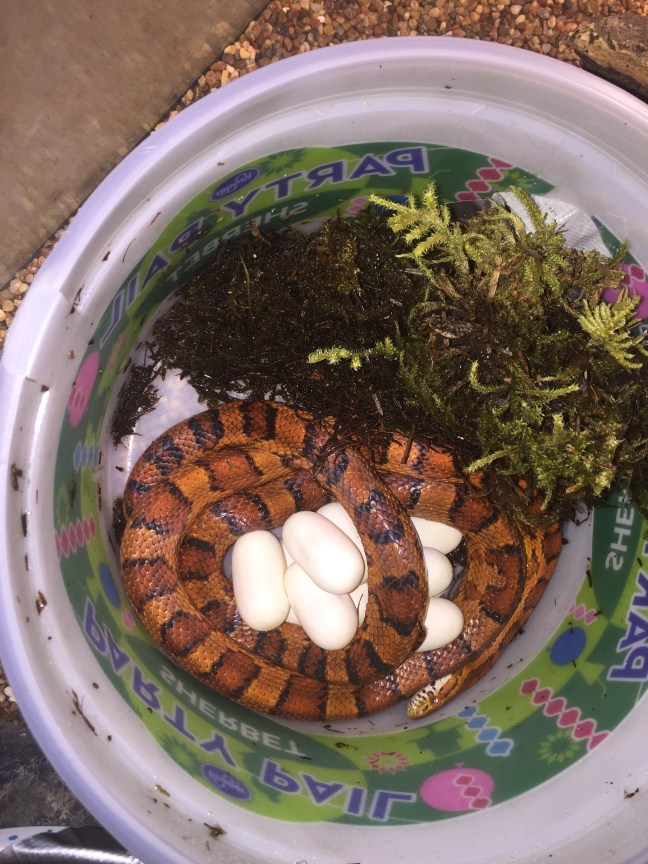 Two of our fourteen baby Corn Snakes have found a temporary home at our favorite reptile pet store, Pets-A-Plenty.